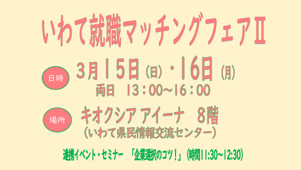 - イベント情報 2026.01.09 「いわて就職マッチングフェアⅡ」を開催します!
